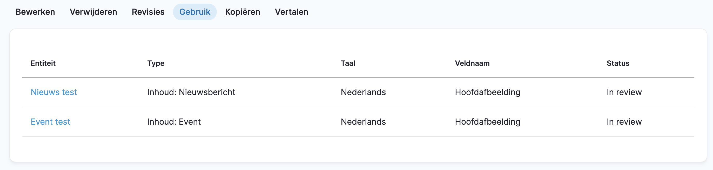 - Entiteit = op welke pagina wordt dit gebruikt?